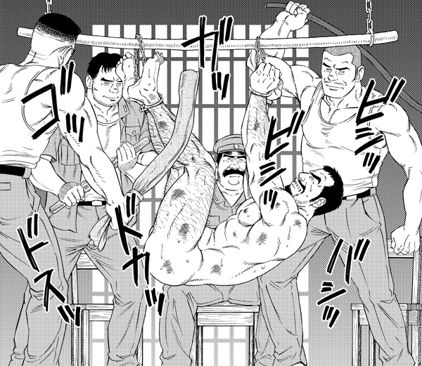 内容は、東南アジア某国で日本人ジャーナリストが軍事政権によって拉致され……という、監禁拷問凌辱系。アンソロのテーマが「オヤジ受」なので、当然被虐者もヒゲマッチョのオヤジです。